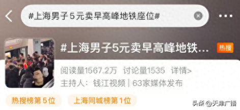 #上海一男子5元卖早高峰地铁座位#