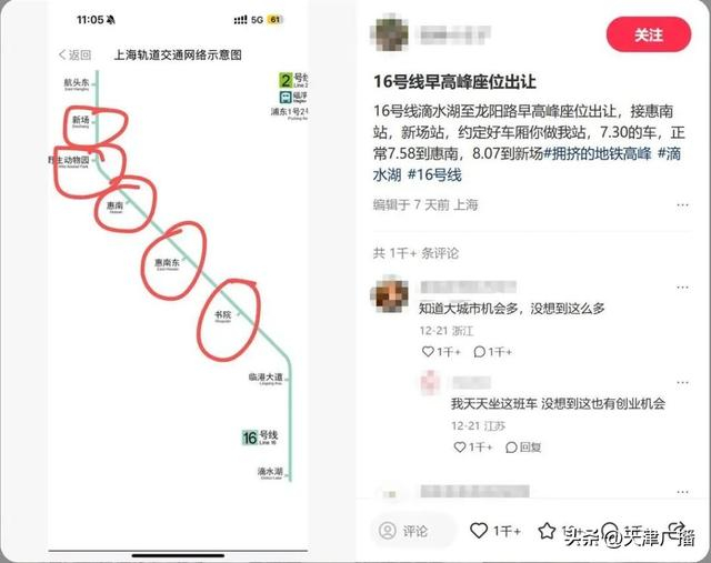 当事人周先生告诉记者,他住上海浦东新区临港地区,坐地铁16号线通勤。他一般早上在16号线滴水湖至龙阳路方向第二站临港大道上车,在惠南站或新场站下车。周先生称,这两站的乘客一般是最多的。