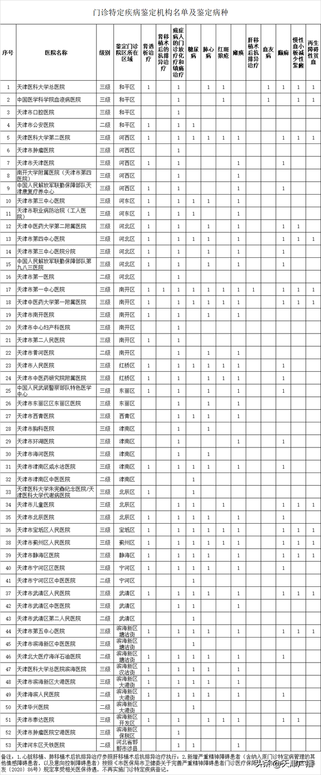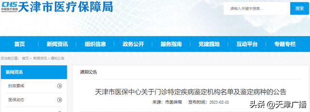 近日,天津市医保中心发布公告,公布天津市当前开展门诊特定疾病鉴定服务的定点医疗机构名单及鉴定病种。