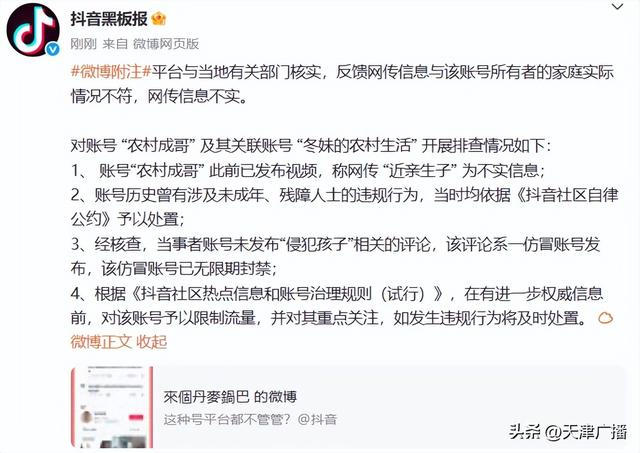 21日下午,@抖音黑板报 发文回应: