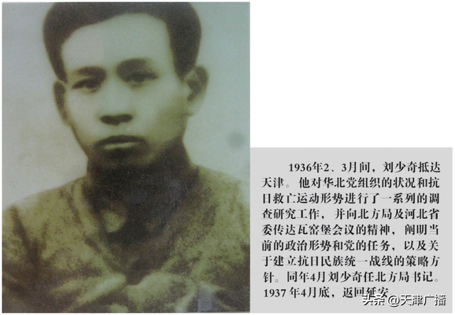 1935年12月,中共中央在陕北瓦窑堡召开政治局扩大会议,确立了党的抗日民族统一战线的策略和方针。为了贯彻会议精神,刘少奇受中共中央的委派,秘密来津,准备组建中共中央北方局并担任书记负责领导北方党的工作。