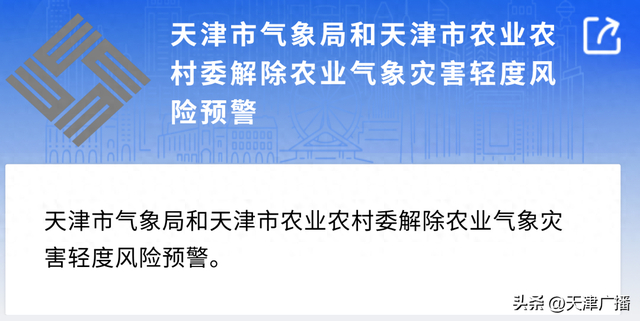 刚刚,天津市气象局和天津市农业农村委解除农业气象灾害轻度风险预警。