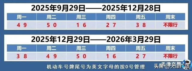 2025年12月29日(周一)起,天津市机动车尾号限行将进入新一轮轮换期。