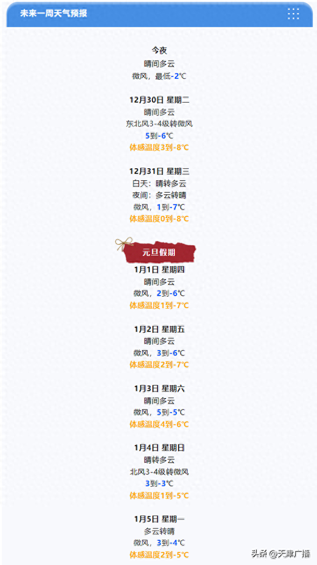 据天津市气象台最新预报,