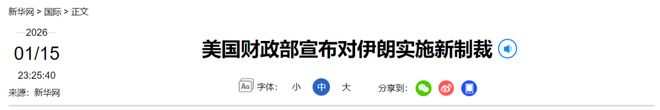 美国财政部15日宣布对伊朗多个个人和实体以及与伊朗关联的多个外国公司实施制裁。