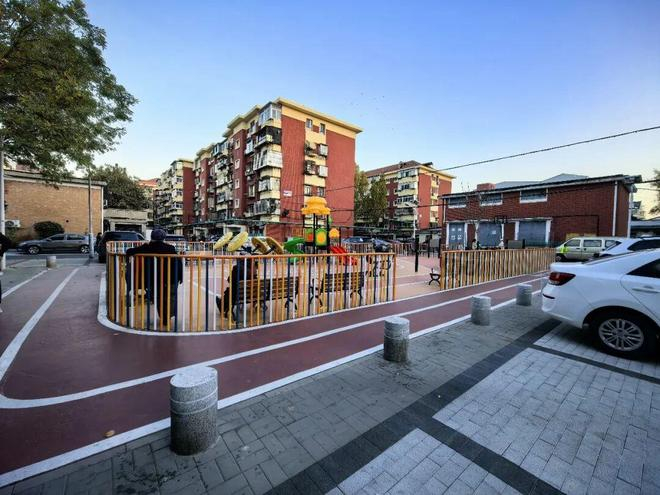 将一些低效场地改造为儿童专属活动场地,配置了儿童器械,通过彩色塑胶地面分区标识,明确划分 “器械活动区”“自由奔跑区” 和 “亲子互动区”,既保留必要的游乐设施,又确保开阔活动空间;