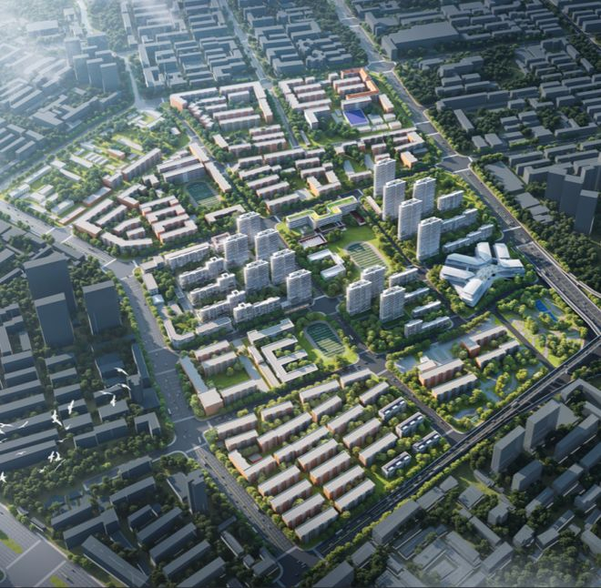 ➢➢一机床老厂区更新改造部分,占地28万平米,规划了28.78万平米的都市产业园,包含保留老厂房修缮加固的商业街区、新建产业办公和配套住宅等三大板块内容,商业、产业、居住互为配套、相互赋能。