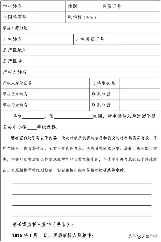 (3)书面转学申请(信息采集时自行下载转学申请模板),须监护人签名、捺指印。