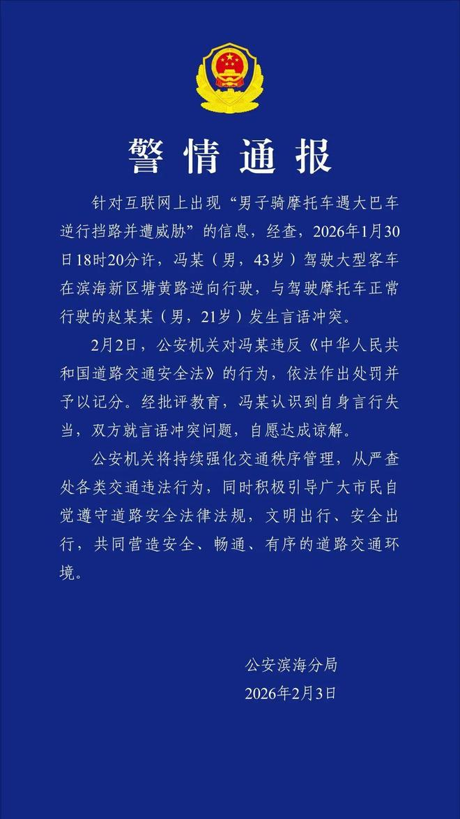 据“平安天津滨海”微信公众号,公安滨海分局2月3日发布警情通报: