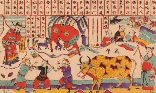 所谓“春牛”,可能是用纸糊成的,也可能是泥做成的,然后在“春牛”肚子里装上五谷。