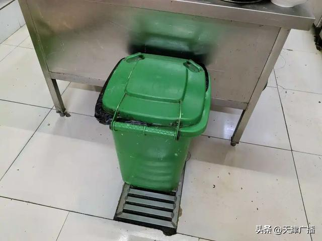 2、后厨未配备带盖脚踏式厨余废弃物垃圾桶