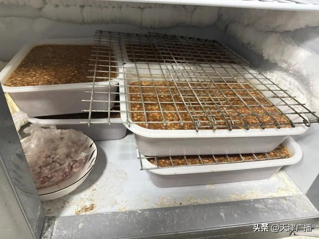 4、冷冻柜内肉馅存储不规范,未定期除霜