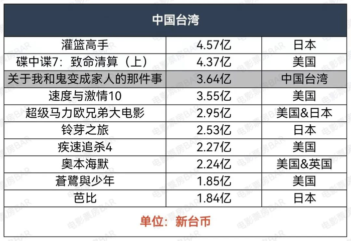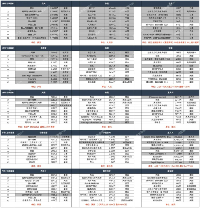 按照本土机构统计习惯,部分国家/地区的跨年电影另外列出。