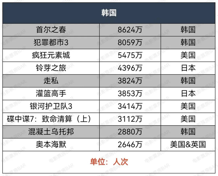另一方面这也给了各国本土片更多机会,2024年有没有更多国家可以摆脱好莱坞电影的刷榜呢?拭目以待。