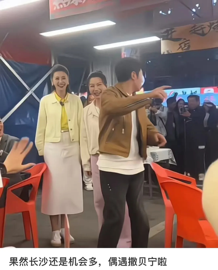 4月24日,撒贝宁携手杨雨、张舒越现身长沙四方坪夜市录制央视综艺,打卡李记飞饼、长沙口味虾、紫苏桃子姜等小吃,还逐桌求助本地人:长沙夜宵有啥必点的吗?有不少网友都偶遇了