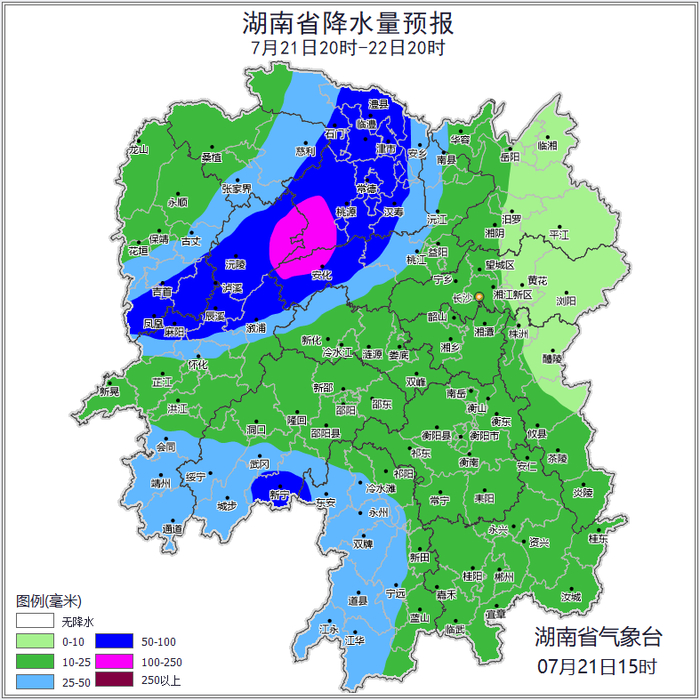 湖南省气象台预计今天(7月22日)至23日湖南有一次降水天气过程省内大部地区有中到大雨局地暴雨到大暴雨阵风7~9级据中国天气网,今年第6号台风“韦帕”带来的强降雨还在持续。今天,沿海的强降雨将有所减少,但贵州、湖南的强降雨将有所增多,贵州大部、四川盆地南部、重庆南部、湖北西部、湖南中西部、江西西部和南部、浙江东南部等地部分地区有大到暴雨。另外,根据中央气象台中期预报,目前已进入台风活跃期,未来10天,西北太平洋还将有1至2个台风生成,并将于23日起影响我国东部和南部海域。湖南最新天气预报今天白天,湘东多云有小到中等阵雨或雷阵雨,其他地区阴天有中到大雨,其中常德、益阳西部、怀化北部、湘西州南部、张家界东部、邵阳南部部分地区有暴雨,益阳(安化)、怀化(沅陵)、常德(桃源)有大暴雨;北风2~3级,局地阵风7~9级;最高气温28~32℃,最低气温24~26℃。