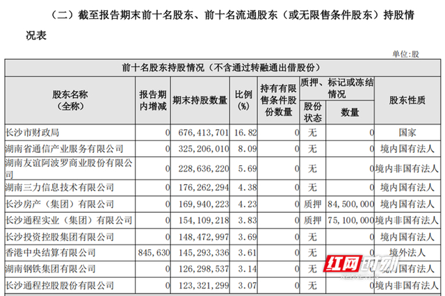 2025年半年报中,长沙银行前十大股东信息。