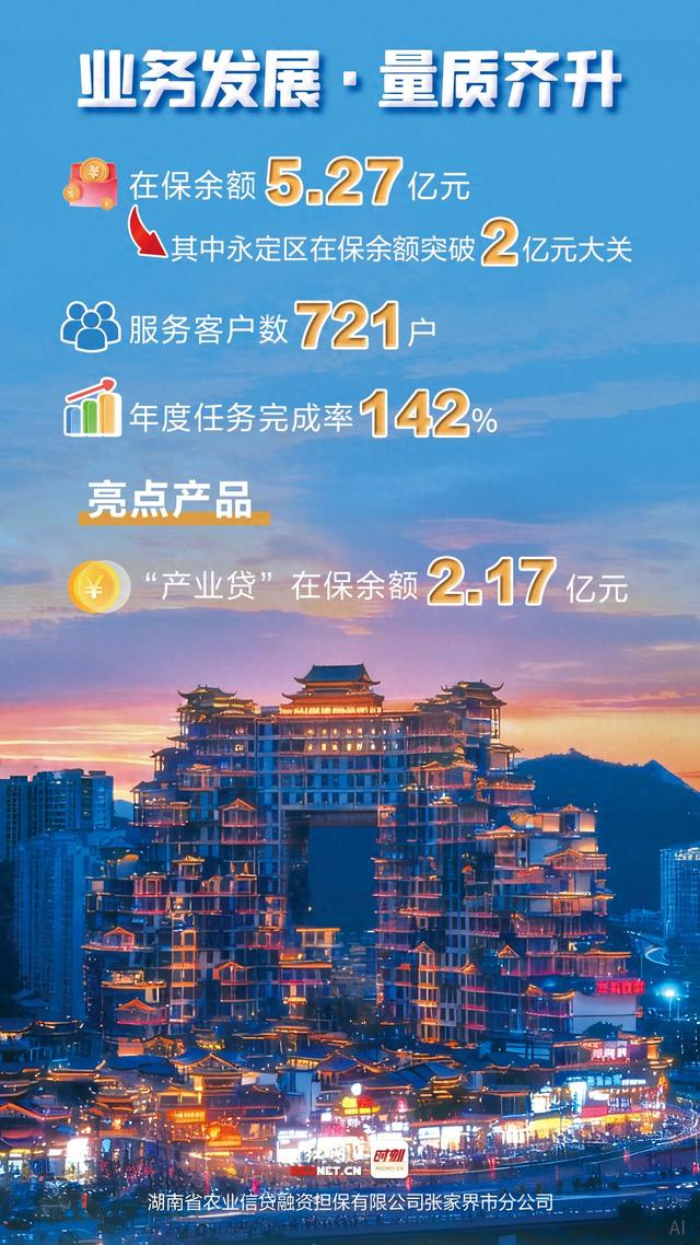 紧扣高质量发展主线,张家界农担通过业务发展“春风”行动,持续为乡村振兴注入强劲金融动能。截至2025年底,分公司农业项目在保余额5.27亿元,服务在保客户达721户,较年初在保金额增长1.07亿元,年度任务完成率高达142%。其中永定区在保余额突破2亿元大关(2.16亿元),在保客户281户。