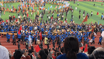 这一切让人不禁回想起常规赛永州主场对阵长沙的震撼景象:道县百龙出征表演气势恢宏,象征着永州队如龙出渊、一往无前。而今天,这种激情再次被点燃。道州龙船被请进绿茵场,在激昂鼓点声音中,冠军球员依次登船,完成了“陆上行舟、绕场一周”的震撼巡游。