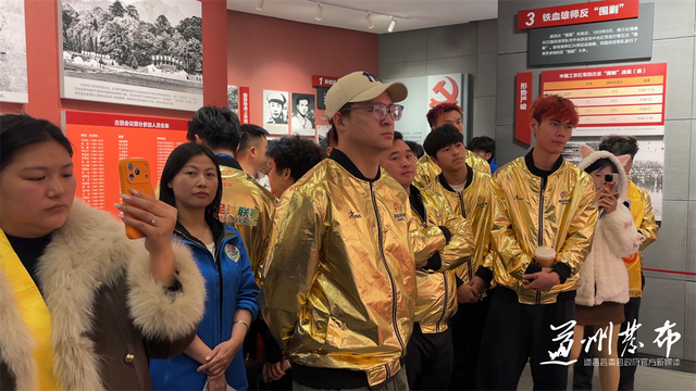 在道县陈树湘革命烈士纪念馆,冠军球队进行了一场特殊的心灵洗礼。“冠军蓝”与“信仰红”在此刻交相辉映,新星的荣耀与历史的星辰光芒交汇。