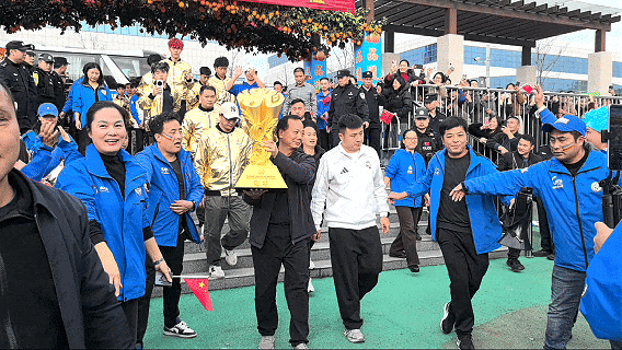 红网时刻新闻12月31日讯(通讯员 谢万波 莫静)12月30日,湘南小城道县以漫天沸腾的热浪,迎回属于广大球迷的英雄——刚刚斩获2025湖南省足球联赛(湘超)冠军的永州队,携金杯踏入“第三现场”——道县文体中心。这座曾在决赛夜见证四万球迷心心相连、隔空呐喊、同频共振的县城,此刻再度被信仰般的“永州蓝”彻底点燃。从屏幕前的摇旗到眼前的金杯,道县人用一场饱含“拙诚”温度的盛会,向“晓了显火”的永州小伙献上最崇高礼赞。