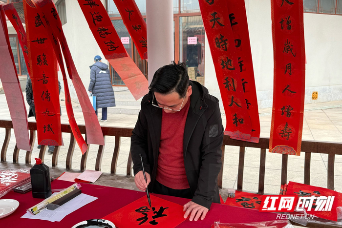 书法家现场写春联送福字。启动仪式后,与会领导与嘉宾移步至潇湘阁广场的年货集市及“致安优品”展区巡展参观,与参展商户、市民亲切交流。本次年货节将持续三天,通过展销结合、线上线下联动的方式,不仅为市民带来实实在在的年味优选,也为安化及全省特色农产品搭建起一个展示、销售、品牌推广的综合平台,切实以消费促产业、以产业助增收,书写城乡互动、共赢发展的新篇章。