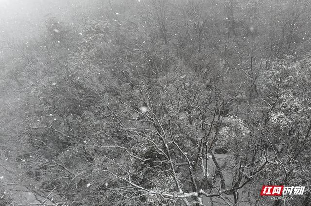 当日清晨,雪花便悄然飘落,起初是零星碎雪,随后逐渐变得浓密。鹅毛般的雪花漫天飞舞,缓缓漫过天门洞、玻璃栈道、云梦仙顶等标志性景点,原本苍翠的峰林被白雪覆盖,嶙峋的山石裹上银装,山间云雾与飞雪交织,远处的山峰在风雪中若隐若现,宛如一幅流动的水墨雪景图。行走在景区内,脚下是轻软的积雪,耳边是风雪掠过山林的簌簌声响,每一步都仿佛踏入仙境,让人心旷神怡。不少游客拿出手机、相机记录下这一美景,与家人朋友分享跨年时刻的浪漫与惊喜。