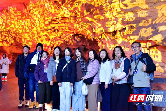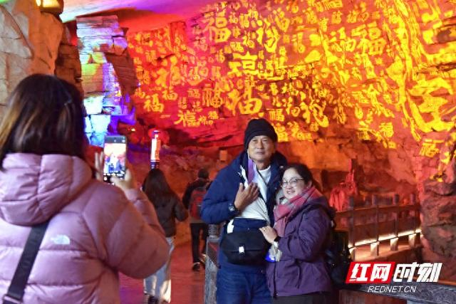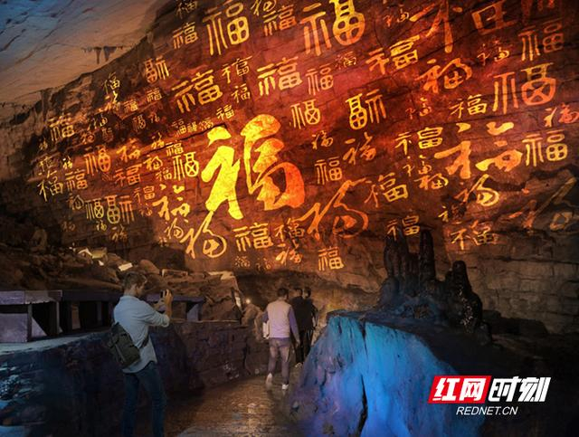红网时刻新闻1月1日讯(通讯员 李远明)元旦打卡万福墙,幸福满满一整年。2026年元月一日,不少游客选择在张家界黄龙洞景区度过新年的第一天。在洞内迷宫区域,景区融合现代光影科技与传统文化打造而成的“万福墙”成为当日最热门的打卡点。该“万福墙”采用4D全息投影技术,将传统“福”文化用生动、立体的方式予以呈现,营造出祥瑞喜庆的独特氛围。中外游客纷纷在此打卡拍照,为2026年送上幸福满满的好彩头。