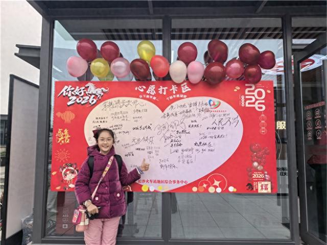 2026年元月1日上午,寒风凛冽,火车站广场上却洋溢着温暖的节日氛围。“红火炬”雷锋志愿者们身着红马甲,穿梭在客流中,为旅客送上一杯杯暖心姜茶、帮旅客拍照、引导旅客写下新年心愿……他们用细致的服务传递着“长沙温度”。