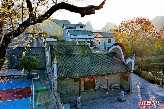 山水为卷,村居为画。航拍镜头下的广西桂林市雁山区草坪回族乡潜经村,如一盘静谧的棋,彩色的屋顶点缀在葱绿之间,蜿蜒的河流如碧带绕村而过,叠翠的峰峦是它永远的背景。走近看,是黑瓦白墙的老屋、贴着红福字的木门、挂着灯笼的宗祠——“白氏宗祠”静立村中,诉说着绵长的根脉与期许。