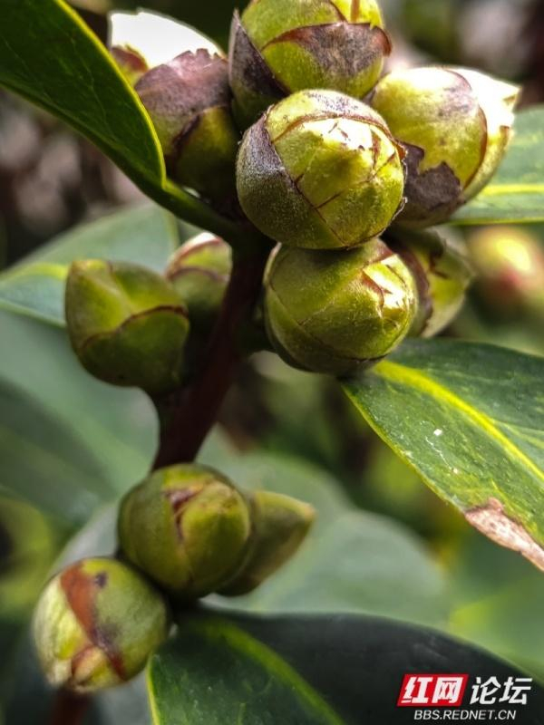 许是昨夜的霜露吻过枝头,来到黄兴故居,便撞见满树的热闹。那些茶花花苞,早褪去了初萌时的羞怯,三三两两相拥,五七五簇成团,挨挨挤挤地缀在青碧的叶间,像一群攒聚着说悄悄话的小姑娘。它们裹着深绿的萼片,像披了层绒绒的小袄,袄子里藏着的,是浅粉、艳红或是素白的梦,鼓鼓囊囊的花苞顶端,已微微透出几分娇色,仿佛下一秒就要挣破束缚,绽成一树春光。