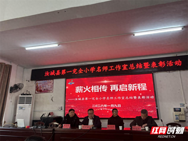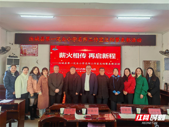 红网时刻新闻1月9日郴州讯(通讯员 朱圆)1月9日,汝城县第一完全小学名师工作室三年工作总结暨颁奖大会在学校大会议室举行。学校行管人员、四个名师工作室成员以及热心教育事业的社会人士齐聚一堂,共同回顾工作室三年耕耘历程,见证成长与收获,为学校教师专业发展注入新动能。