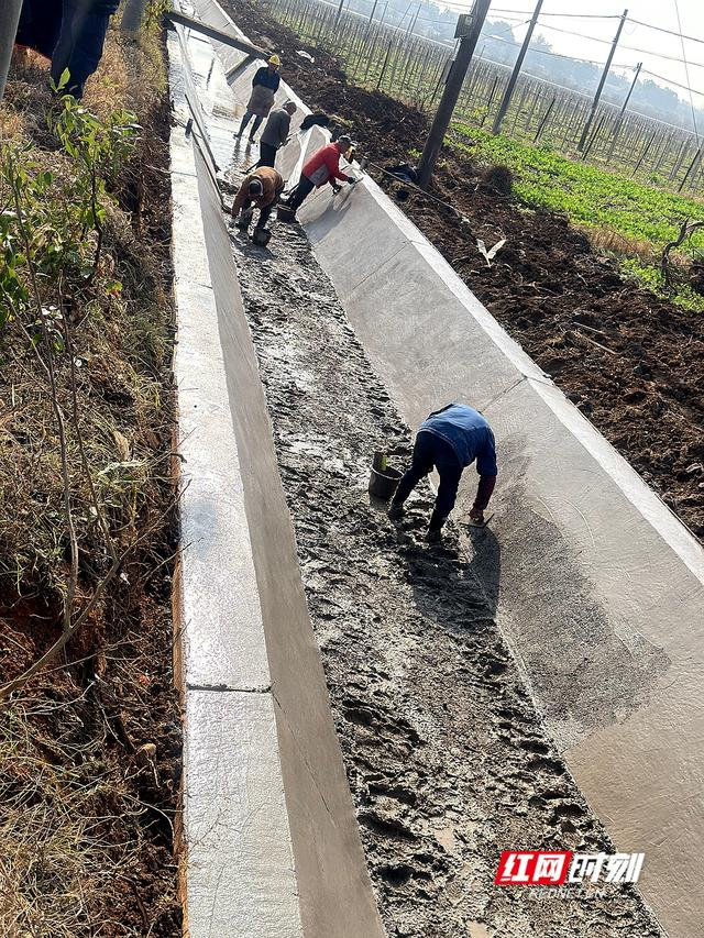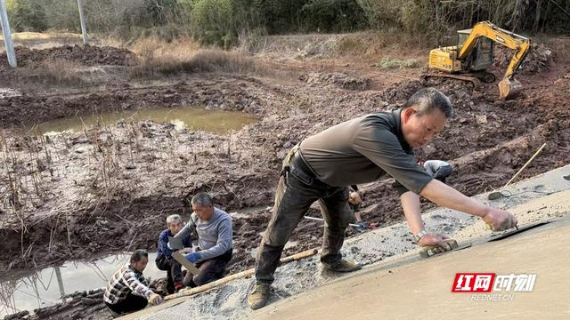 在易俗河镇安联村,党员带头协调推进377.65亩农田改造,同步新建7口山塘、近两千米渠道和3条机耕路,构建起“灌排畅通、耕作便捷”的一体化设施网络,终结了当地“靠天吃饭”的历史,项目预计年前全面竣工。