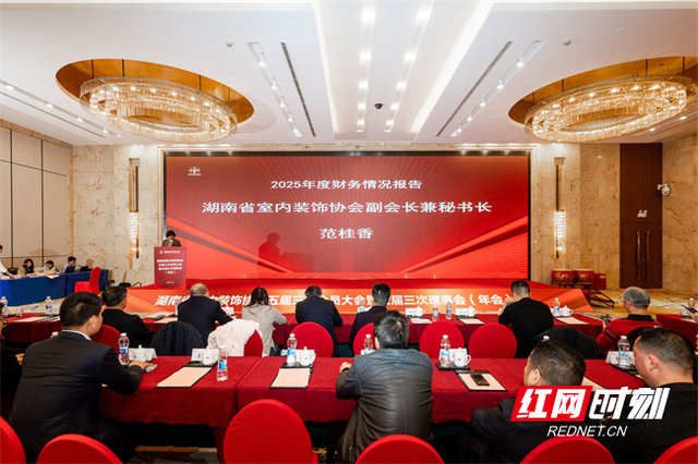 会上,湖南省室内装饰协会副会长兼秘书长范桂香向大会报告了2025年度财务收支情况,监事彭坚作监事工作报告。三项报告均获与会代表一致审议通过。