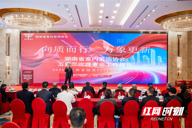 会议以“向质而行 万象更新”为主题,湖南省室内装饰协会党支部书记、会长李金龙代表第五届理事会作2025年度工作报告,并部署2026年重点工作。报告从十一个方面系统回顾了协会过去一年在提振消费、服务企业、规范市场、推动行业转型升级等方面取得的积极成效:联合湖南省家具行业协会、长沙支点展览集团成功举办长沙建博会;在湖南省福彩中心支持下,为10户特殊困难家庭实施适老化改造;协同市场监管与消费者权益保护机构,推动出台《家装施工合同示范文本》及《建筑声学地方标准》;组织开展行业职业技能竞赛与专题培训;高效响应企业诉求,协调会员纠纷,妥善处理消费者投诉[下载黑猫投诉客户端];持续强化党建引领,组织会员企业开展多场学习交流活动。