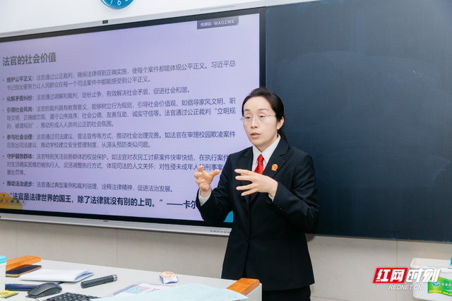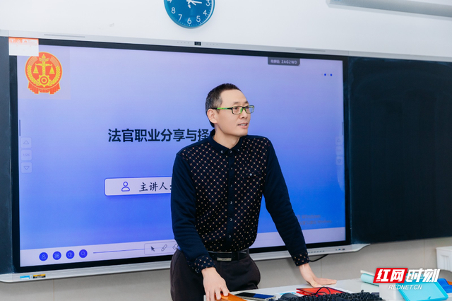 活动现场,各班教室化身职业体验站。法官、警察、企业家、医生科研工作者……受邀家长以不同职业的专家身份,生动讲解职业日常、专业门槛与发展前景。从庭审现场到代码世界,从科研工作到诊疗一线,鲜活的案例让学生直观认知职业全貌,打破对各类职业的刻板印象。