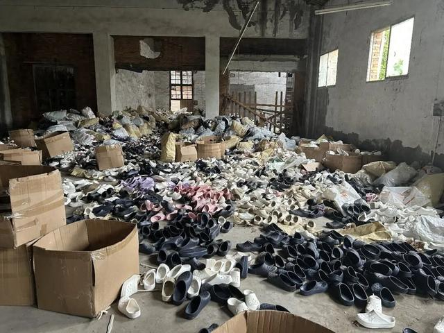 经查,自2023年起,犯罪嫌疑人郭某等19人,在未取得“卡骆驰(Crocs)”品牌授权的情况下,在常德市某闲置厂房内生产假冒品牌拖鞋40余万双后,将产品转运至桃源仓库储存,并销往全国各地,价值近千万元,非法获利近100万元。