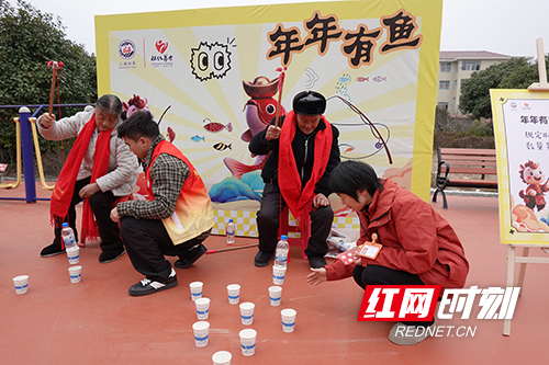 随后,游园活动在舞蹈、黄梅戏、非洲鼓等暖场节目表演中拉开序幕,工作人员带领老人们有序排队,纷纷参与现场精心设置的夹弹珠、丢沙包、投壶、报纸拉球、手工花猫、年年有鱼等游戏互动区,老人们化身‘游戏达人’,在集章打卡中收获欢笑与惊喜,用活力满满迎接马年新春。