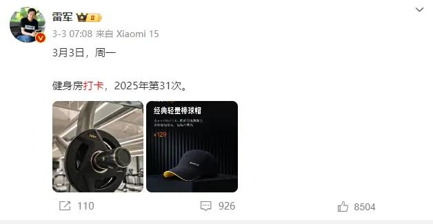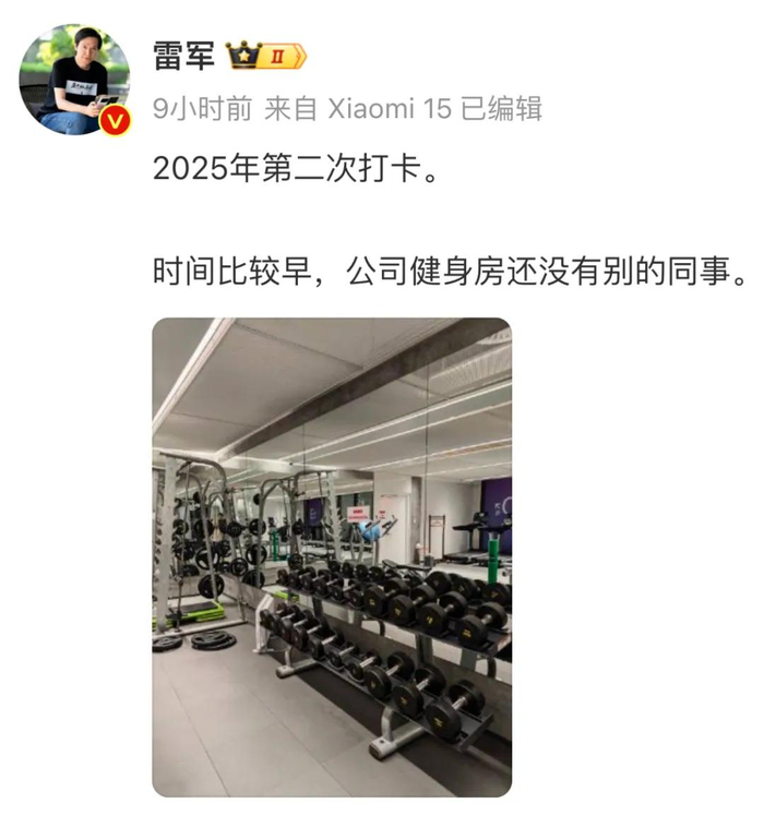 雷军此前一直坚持在微博打卡,表示自己会经常进行跑步、登山等有氧运动。