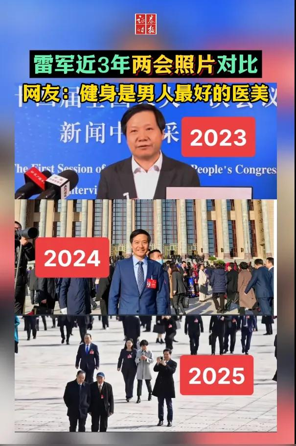 图源 微博截图跟前几年对比,雷军今年身材瘦削,发量充足、精神充沛,毫无发福的“油腻感”,完全颠覆了大家对多数中年男性的刻板印象。