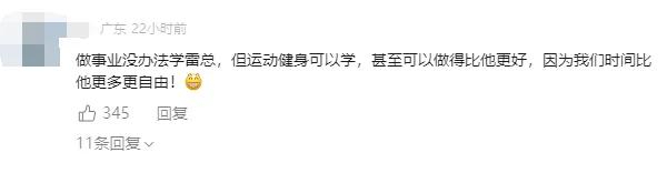 图源 证券时报 视频号评论截图2025年刚开始,雷军就曾在跨年直播中表示自己将开始好好健身,并立下「100次健身打卡」的目标。