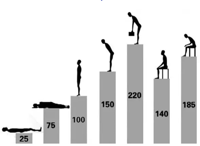 不同姿势腰部受力图(单位:千克)