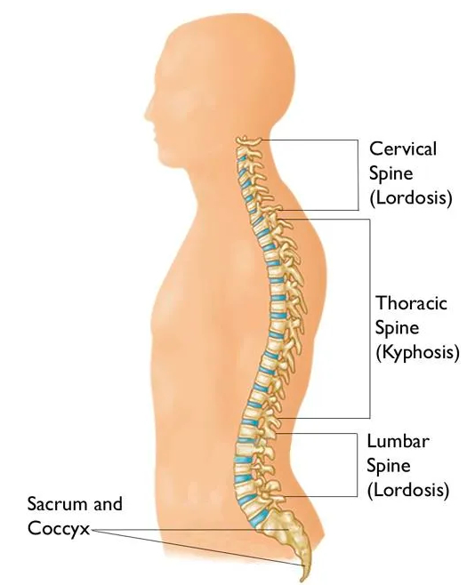 人类健康的脊柱是有自然曲度的,也就是前凸后凹。