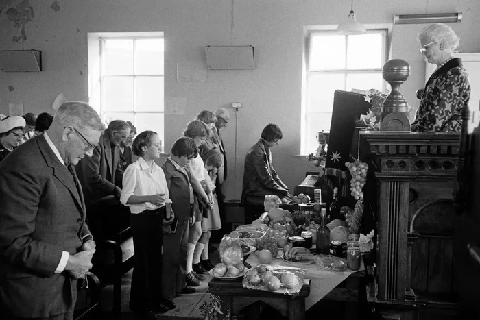 帕尔的第一批主要作品《不墨守成规者》于1975 年至 1982 年间在西约克郡、大曼彻斯特和爱尔兰的农村社区开展。他通过在当地教堂进行拍摄,来关注农村生活和农业社区的衰落。虽然他当时的作品是黑白的,与他最著名的彩色摄影大不相同,但您可以看到他的风格不断发展的过程。这些照片并不像他的其他作品那样粗糙,但它们仍然专注于平凡,并没有着手美化他的拍摄对象。平凡而幽默的时刻无处不在,但整个项目却笼罩着一种悲伤和衰落的感觉。