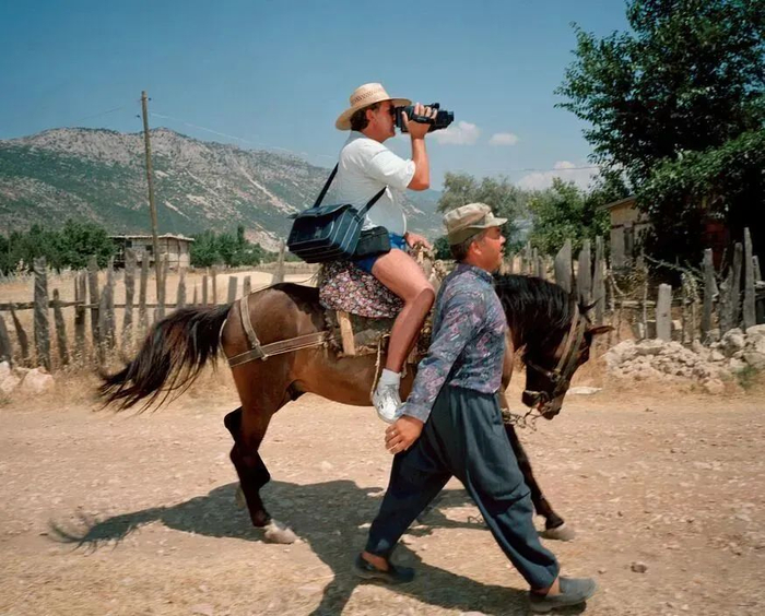 帕尔将目光转向了对大众旅游业的批评,他也将其视为一种炫耀性消费形式。他说,“关于旅游业的事实是,一个地方的现实与它塑造的神话完全不同。” 他展示的是人们与周围环境如此脱节,以至于他们看起来像是在游乐园而不是真实的地方。