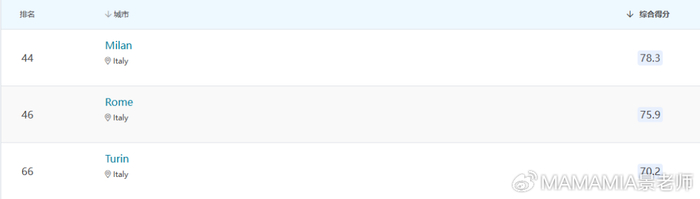本次,意大利共有3个城市跻身QS最佳留学城市榜TOP 100,分别是米兰排名第44位,罗马排名第46,都灵排名第66