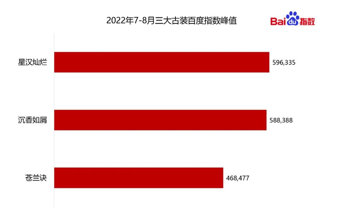 受众的积极互动也体现在百度搜索指数方面,在暑期三大古装剧中,《星汉灿烂·月升沧海》的百度指数峰值排名首位。不难看出,该剧不仅受众覆盖力强,还在全网引发网友好奇和关注,实现了影响力的破圈。