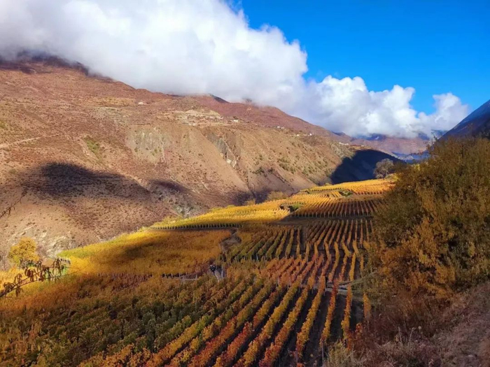 1848年,法国籍天主教传教士将酿酒葡萄传入德钦。现在茨中教堂东面的葡萄园,现在依然在种植着150多年前从法国引种的“玫瑰蜜”葡萄。如今许多来到产区的业内人士都会来茨中村拜访,这里不仅是产区酿酒葡萄种植历史的溯源地,如今一些酒庄的发酵车间、酒窖也在这个澜沧江边的古老村落里。