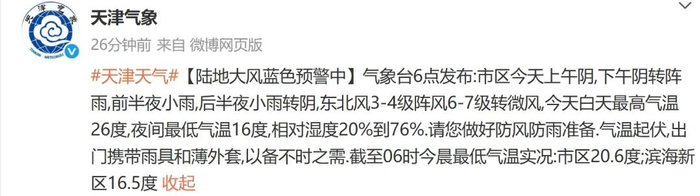 天津气象部门最新预报