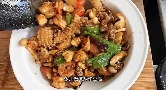 早年间,饭庄师傅把剩下的半块豆腐、几只虾仁烩在一起,竟也成就了爆款美味。至于“八珍”,从来没有死规矩,高档饭庄里,鲍鱼、干贝齐上阵撑场面;百姓家里,虾仁、木耳、香菇、玉兰片凑齐八样,就够地道。